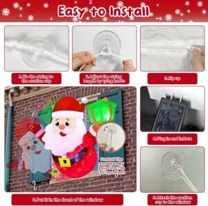 - The broke out from window Santa Christmas inflatable with an eye-catching design will attract your neighbors and get more compliments. Bright and Multi-colored lights in the Christmas Garden Decor will create a happy and warm Christmas atmosphere for kids and adults alike.