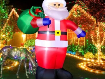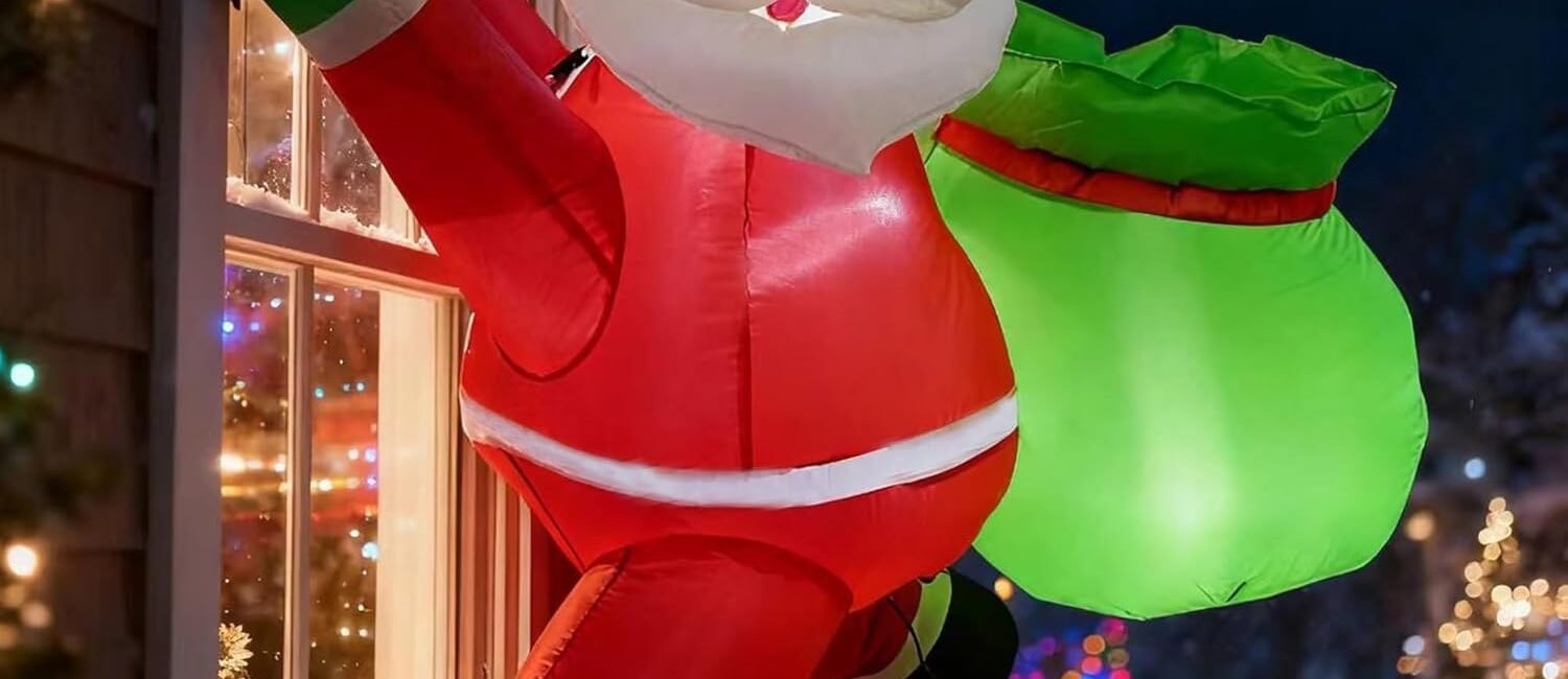 • You will receive an inflatable Christmas decoration with blower, LED lights, plugs, extension cords, ground stakes, fixing ropes and fixing water bags, fully equipped for outdoor or indoor use.
