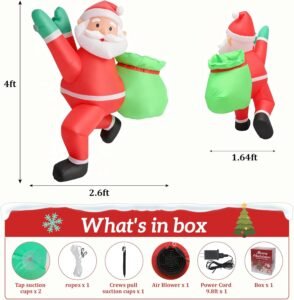 4FT Christmas Inflatable Santa Claus Outdoor Decorations Built-in Bright LEDs