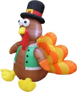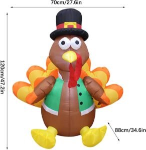 Celebrate the season of gratitude with this 4ft Thanksgiving turkey inflatable, glowing warmly with built-in LED lights that make it a charming focal point for your yard, patio, or harvest party. Standing at 120cm tall with a realistic, playful design, it’s perfect for welcoming guests or adding festive cheer to your autumn décor. Set it up easily with the powerful built-in blower and secure it outdoors with stakes and ropes, then pair it with hay bales, pumpkins, and fall foliage for a cozy, memorable harvest display that delights both kids and adults.