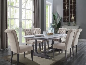 Sku: AE73265Sale Price: $1499 ORDER NOW Gracefully crafted from wood in a muted, earthy gray oak finish, the dining table …