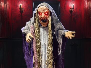 The JOYIN 72″ Standing Animatronic Witch adds eerie motion, sound, and light to any outdoor Halloween display. Durable, lifelike, and easy to set up for a truly haunting experience.