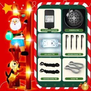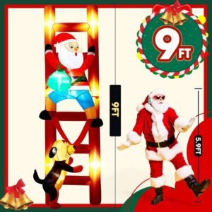 Bring laughter, cheer, and unforgettable moments to your holiday season with this gigantic 9-foot Inflatable Santa Claus & Dog! Picture this: Santa attempting a stealthy climb up the ladder, only to have a mischievous dog tug at his pantsβrevealing his classic blue underwear! The perfectly detailed expressions of both Santaβs panic and the dogβs sly satisfaction make this scene the ultimate conversation starter for your holiday dΓ©cor.