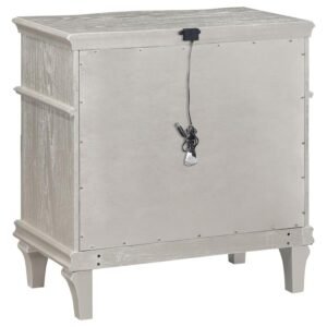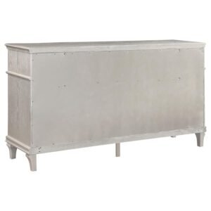 - Silver oak finish with glimmering accent panels is elegant and modern, delivering a glam finishing touch