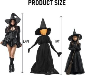 • Life-Size Witches: The witches are life-sized, stands at a full 5 feet, resembling a real ghostly witch. Three witches connected by joined hands create a creepy circle effect. enhancing their creepy and lifelike appearance