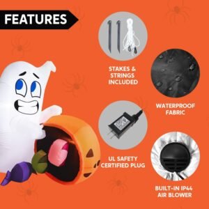 Brighten up your Halloween with the Joiedomi 5FT Inflatable Ghost with Pumpkin Cauldron — a cheerful outdoor decoration that glows with built-in LED lights. This inflatable ghost adds a friendly, festive touch to your yard while delighting trick-or-treaters and guests.
