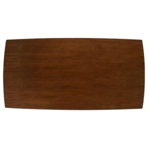 | • Seven-piece dining table set includes rectangular table and six matching side chairs • Dark walnut wood tones enhance the mid-century inspired profile and tapered frame • Chairs feature low curved backrests with open arms and tailored brown fabric seats • Upholstered in a soft polyester-cotton blend for comfort and durability • Built with rubberwood, engineered wood, and walnut veneer surfaces • Ideal for both casual and formal dining spaces with timeless retro design |