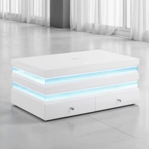 Meet Maloy, where modern design meets smart innovation. This white rectangular cocktail table blends futuristic aesthetics with lifestyle functionality — perfect for sleek living rooms, entertainment lounges, or contemporary lofts.