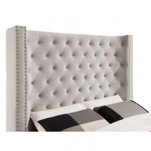 The Mirabelle Glam Style offers detail crafted, the outcome is this beautifully designed bed! Shiny nailhead trim perfectly lines the wingback panel headboard, which also features deep button tufting for added depth and design.